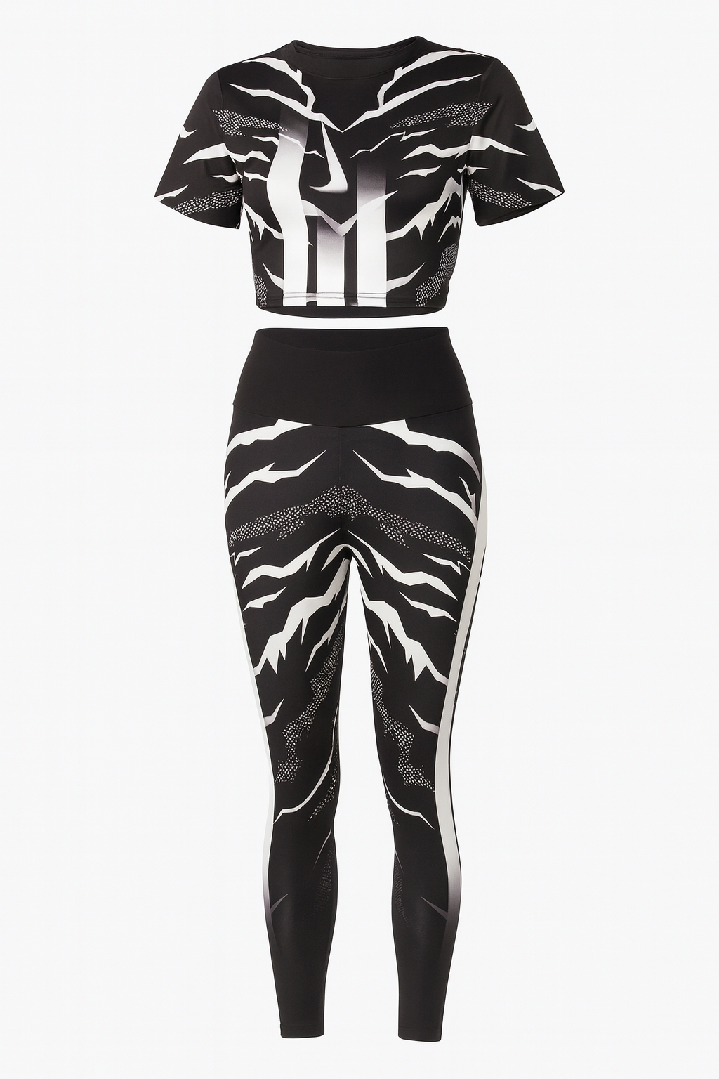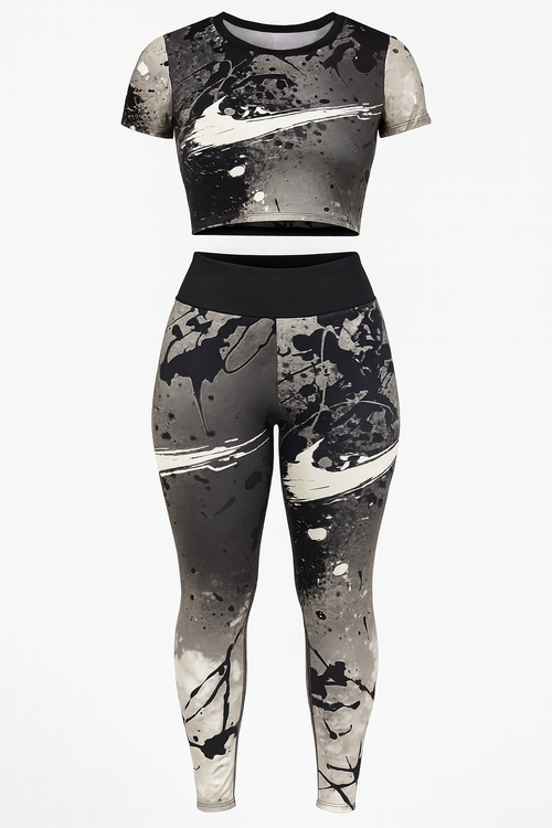 این ست دو تکه شامل کراپ آستین کوتاه و لگ جذب، انتخابی عالی برای باشگاه، ورزش در فضای باز یا استایلهای اسپرت روزمره است.