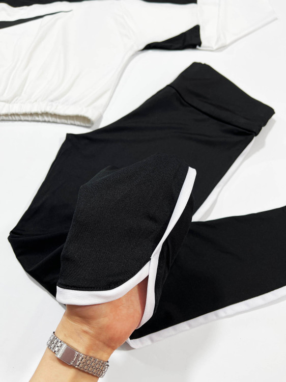 ست کراپ و لگ نایک مدل موکا بیلیون، یک انتخاب اسپرت و چشمگیر برای استایلهای ورزشی و روزمره است. این ست با طراحی دو رنگ سفید و مشکی و چاپ باکیفیت، ظاهری حرفهای و خاص ایجاد میکند.